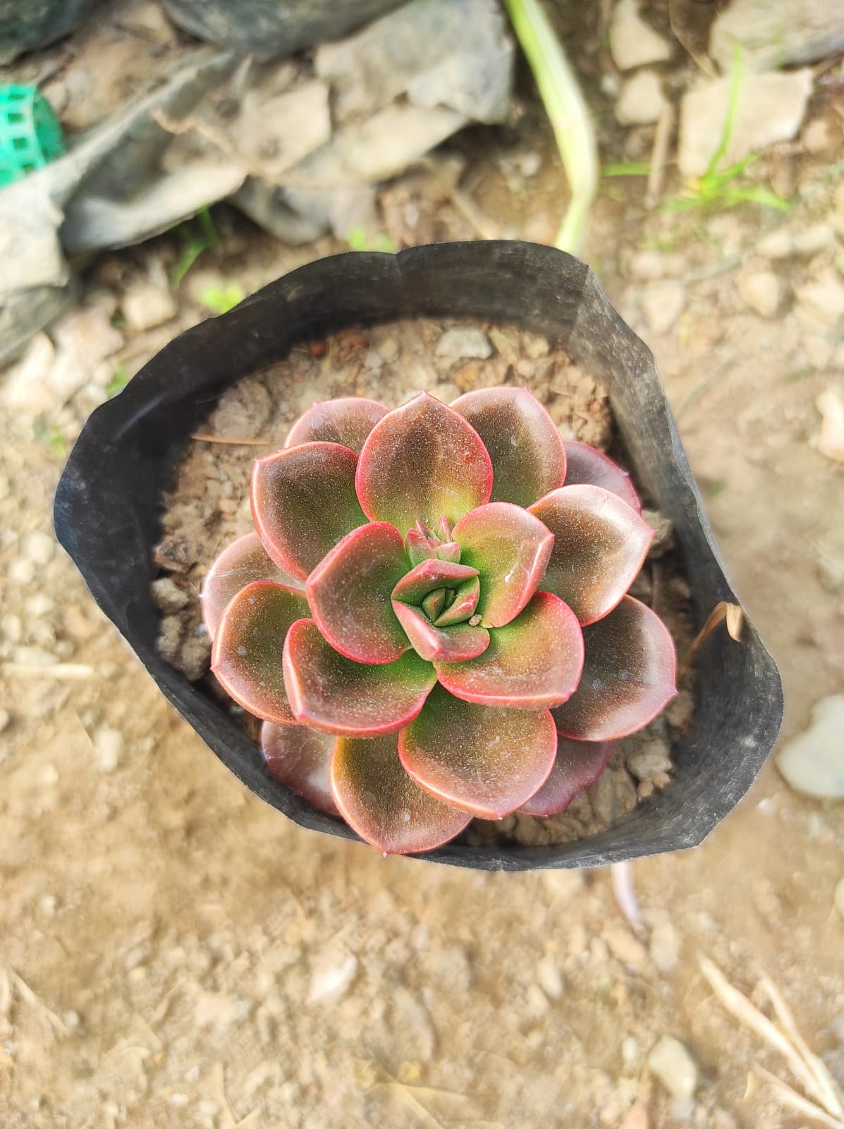 Echeveria need bright sunlight to maintain their colors and compact rosette form. They will not survive a hard frost, but if there is a risk of freezing temperatures they can be brought indoors to grow on a sunny window sill or under a grow light.